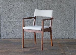 シンプルなデザインにクッション付きの背もたれで掛け心地にもこだわったアームチェア。直線的で長いアームが肘をしっかりと支えるので、ゆっくりとくつろいでいただくことができます。